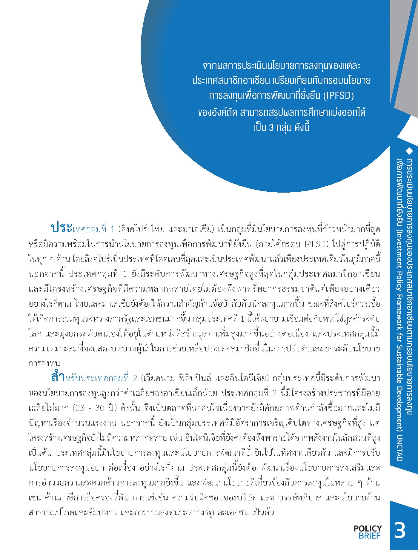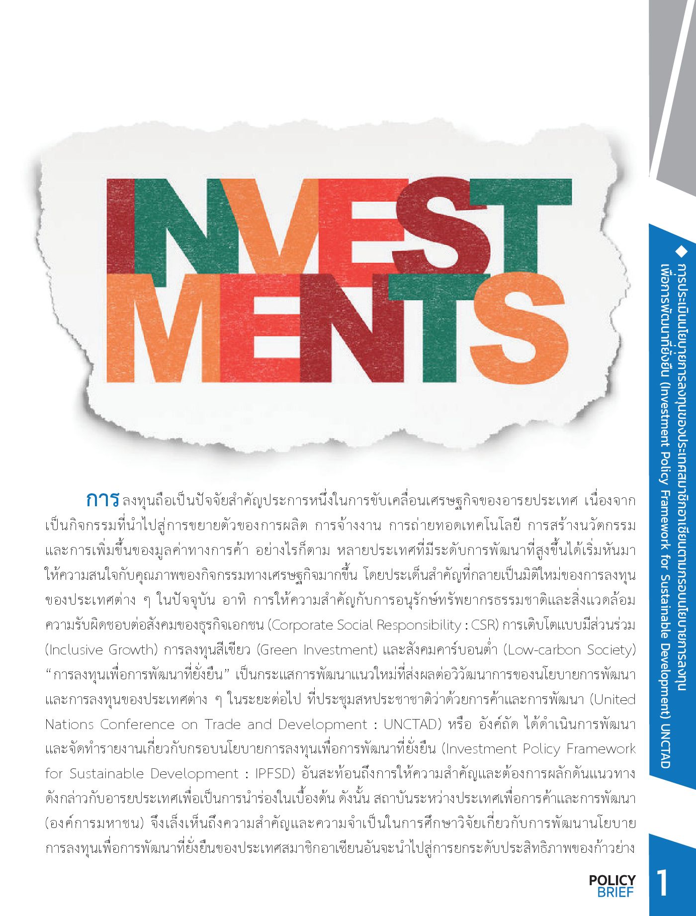 การประเมินนโยบายการลงทุนของประเทศสมาชิกอาเซียนตามกรอบนโยบายการลงทุนเพื่อการพัฒนาที่ยั่งยืน (Investment Policy Framework for Sustainable Development) UNCTAD
