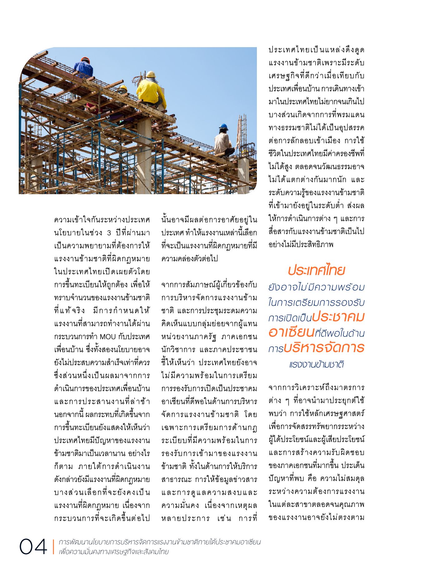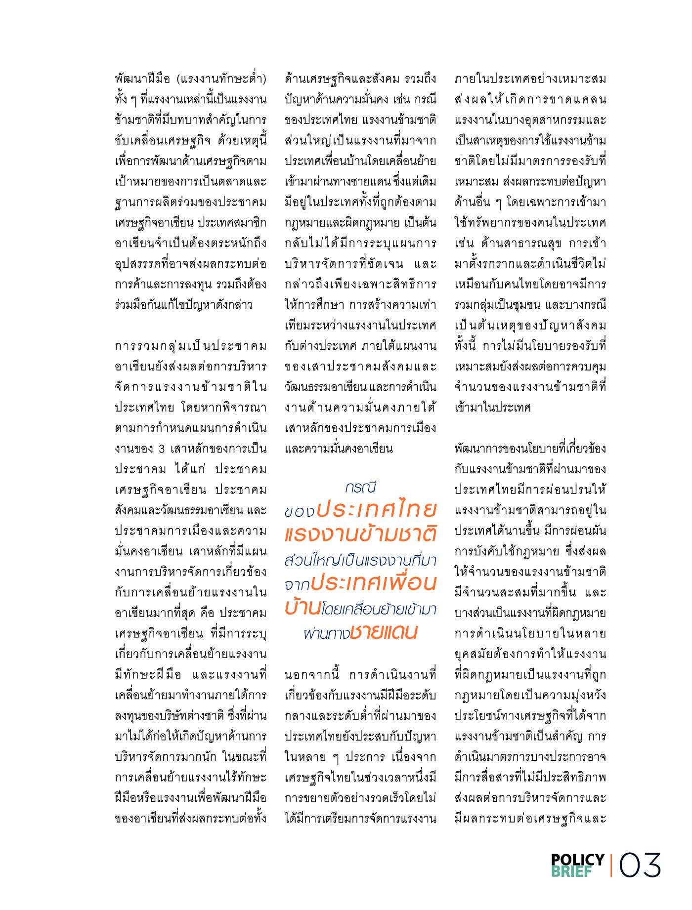 การพัฒนานโยบายการบริหารจัดการแรงงานข้ามชาติภายใต้ประชาคมอาเซียนเพื่อความมั่นคงทางเศรษฐกิจและสังคมไทย