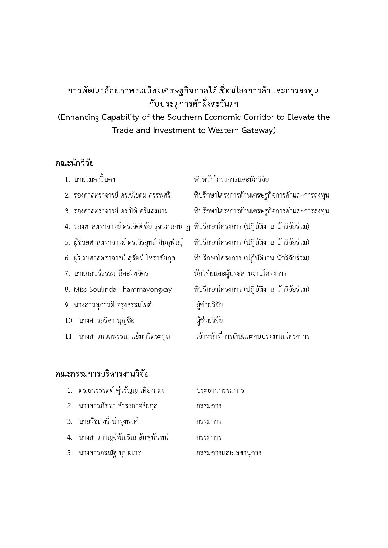 การพัฒนาศักยภาพระเบียงเศรษฐกิจภาคใต้เชื่อมโยงการค้าและการลงทุนกับประตูการค้าฝั่งตะวันตก