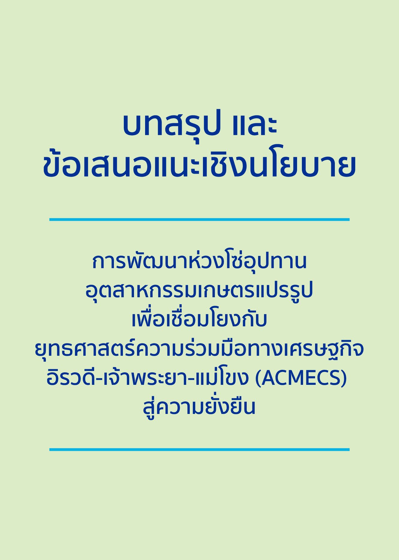 บทสรุป และข้อเสนอแนะเชิงนโยบาย การพัฒนาห่วงโซ่อุปทานอุตสาหกรรมเกษตรแปรรูปเพื่อเชื่อมโยงกับยุทธศาสตร์ความร่วมมือทางเศรษฐกิจ อิรวดี-เจ้าพระยา-แม่โขง (ACMECS) สู่ความยั่งยืน