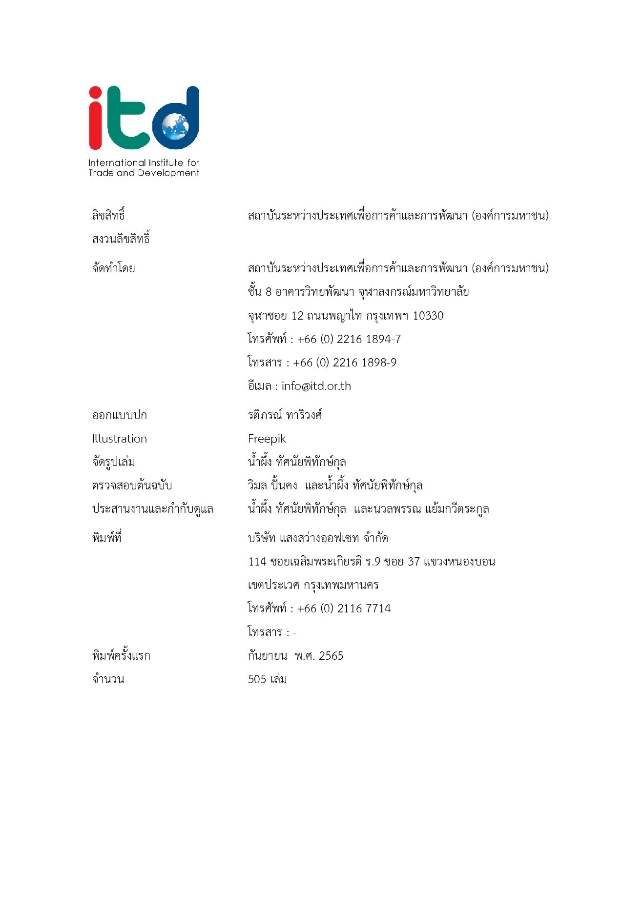 • Author : สถาบันระหว่างประเทศเพื่อการค้าและการพัฒนา (องค์การมหาชน)