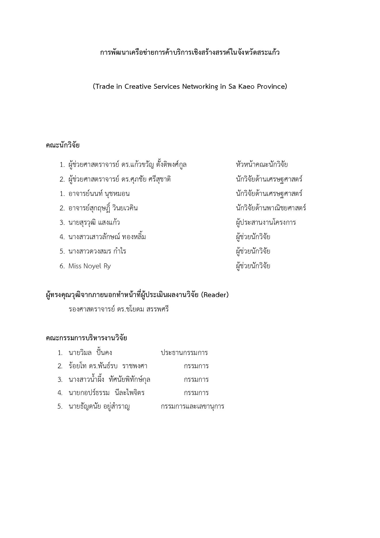 การพัฒนาเครือข่ายการค้าบริการเชิงสร้างสรรค์ในจังหวัดสระแก้ว
