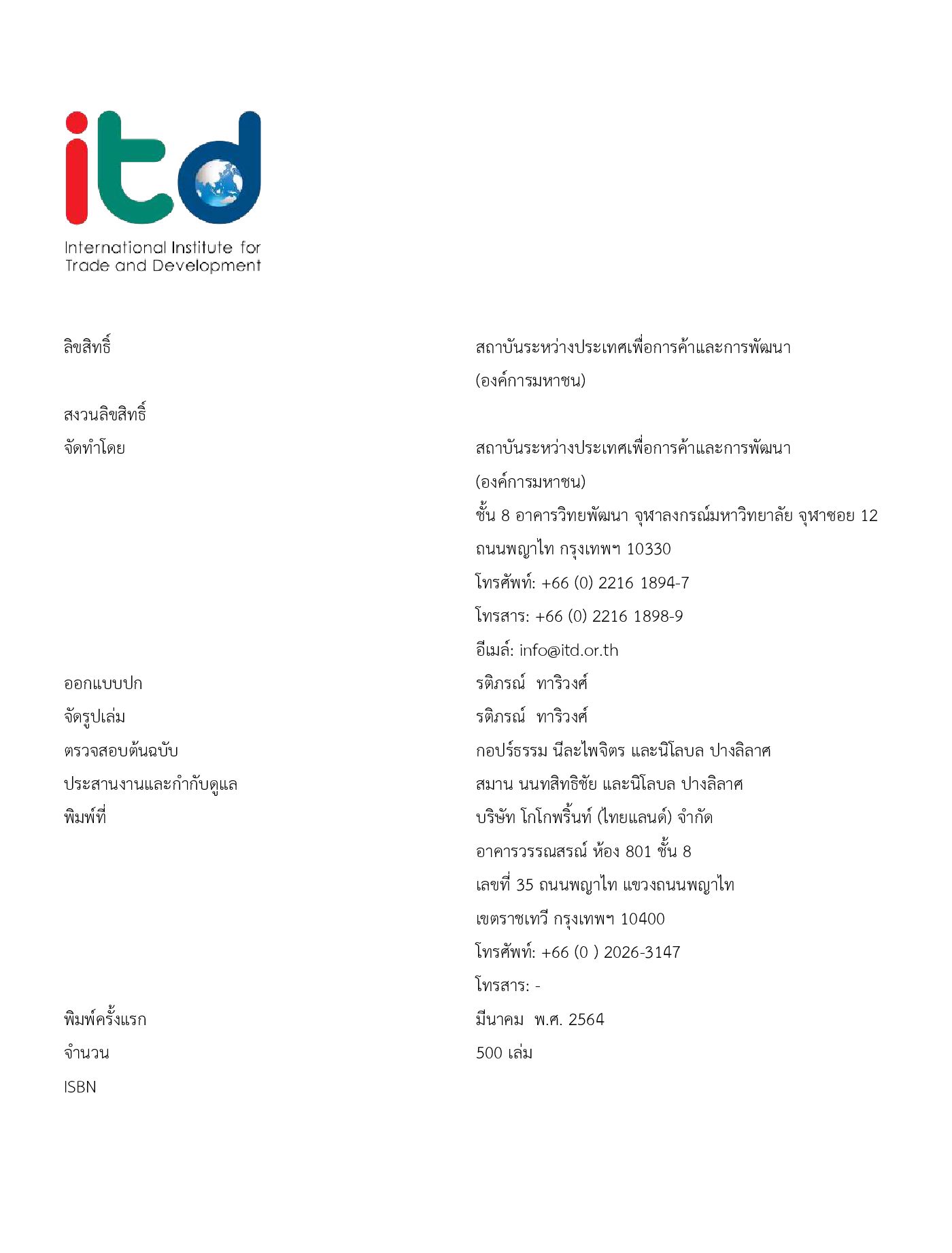 • Author : สถาบันระหว่างประเทศเพื่อการค้าและการพัฒนา (องค์การมหาชน)