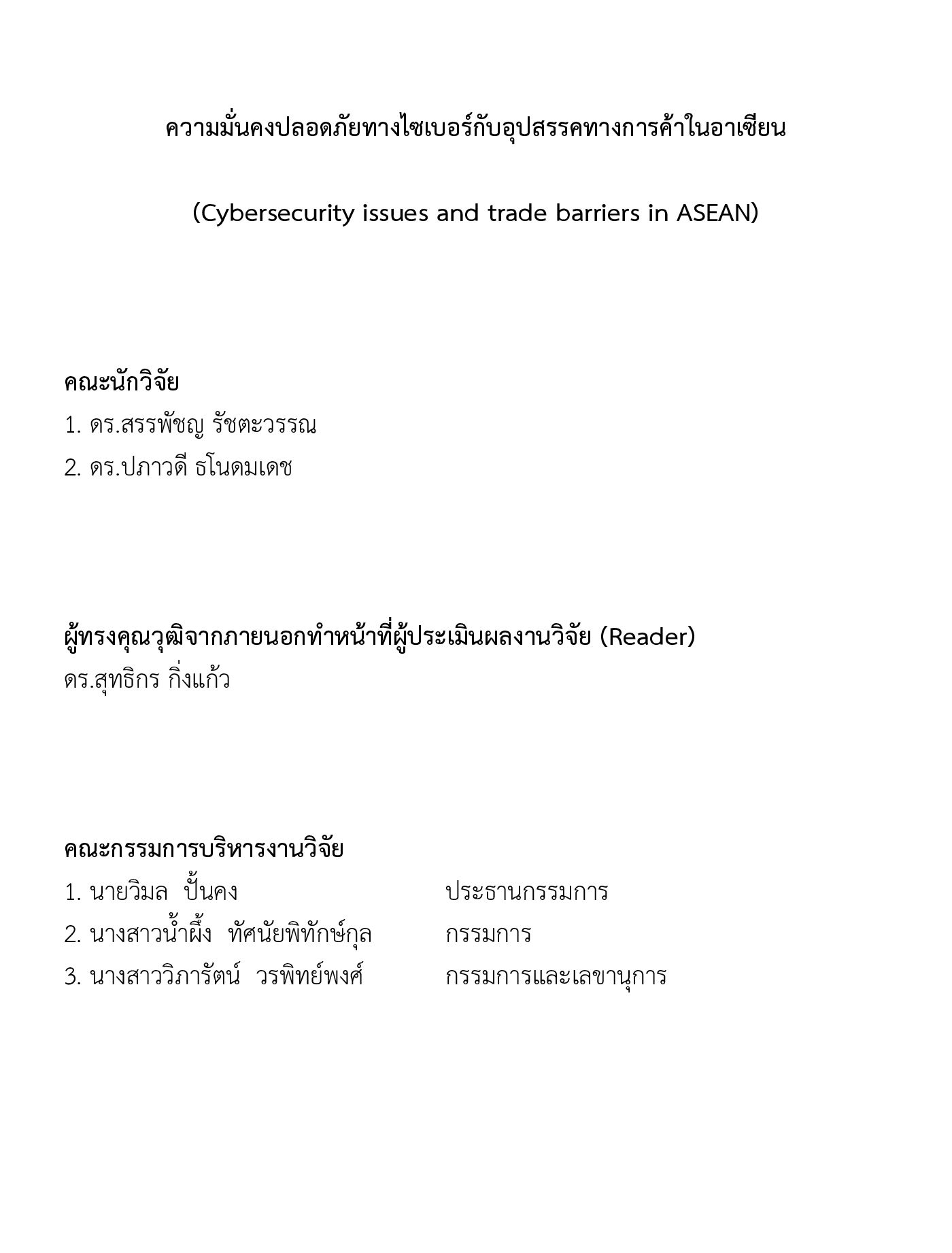 ความมั่นคงปลอดภัยทางไซเบอร์กับอุปสรรคทางกาารค้าในอาเซียน (Cybersecurity issues and trade barriers in ASEAN)