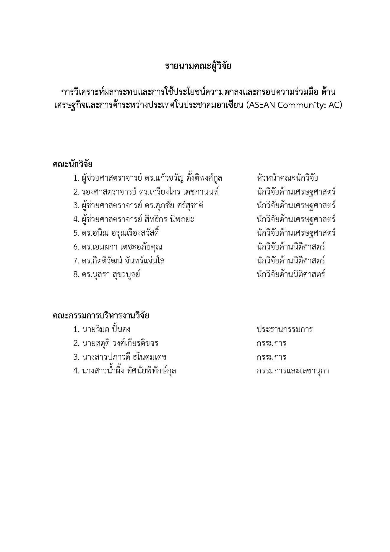 การวิเคราะห์ผลกระทบและการใช้ประโยชน์ความตกลงและกรอบความร่วมมือด้านเศรษฐกิจ